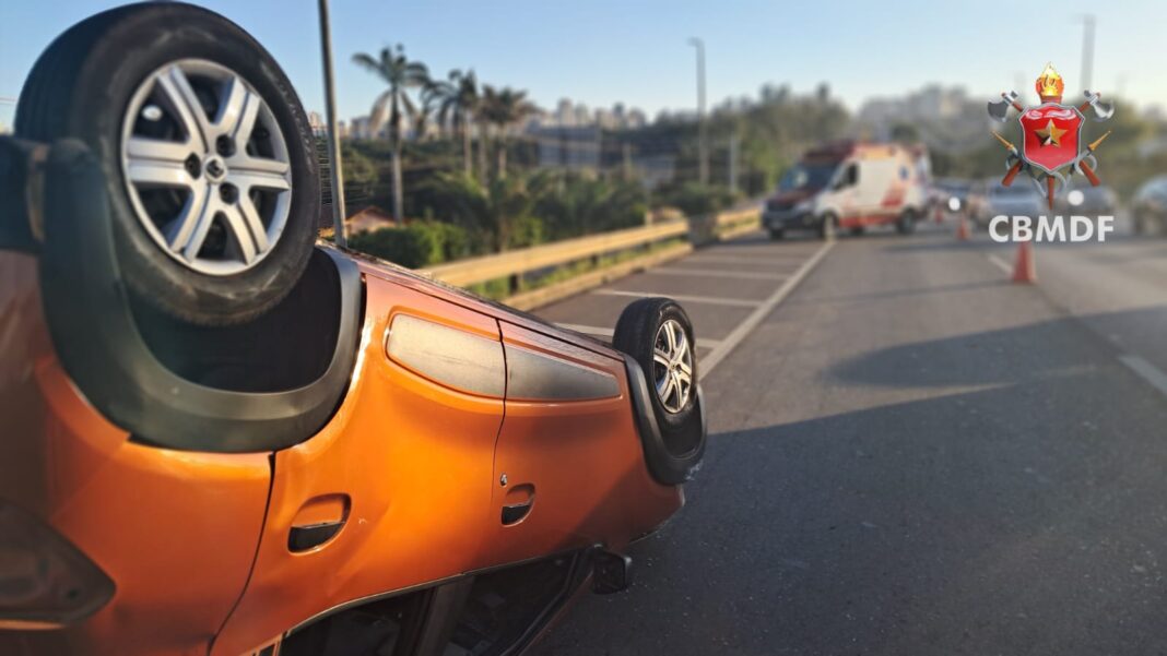 Um capotamento mobilizou equipes do Corpo de Bombeiros Militar do Distrito Federal (CBMDF) na tarde deste sábado (25), na Estrada Parque Taguatinga (EPTG), no Distrito Federal.