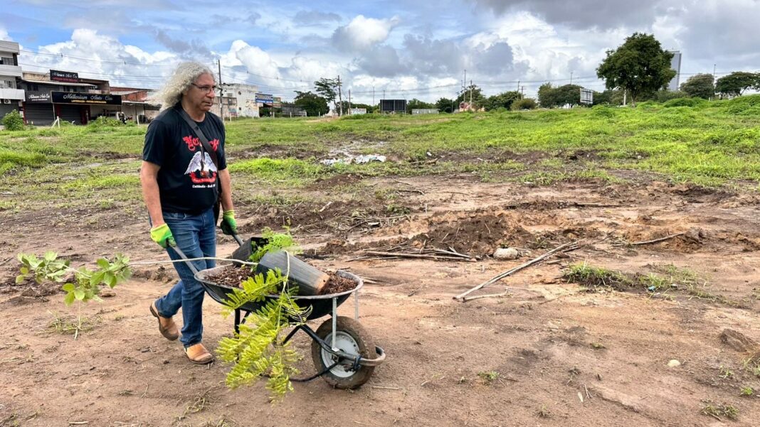 O comerciante João Carlos Mendes participou do plantio voluntário e ressaltou o sentimento de pertencimento gerado pela ação.