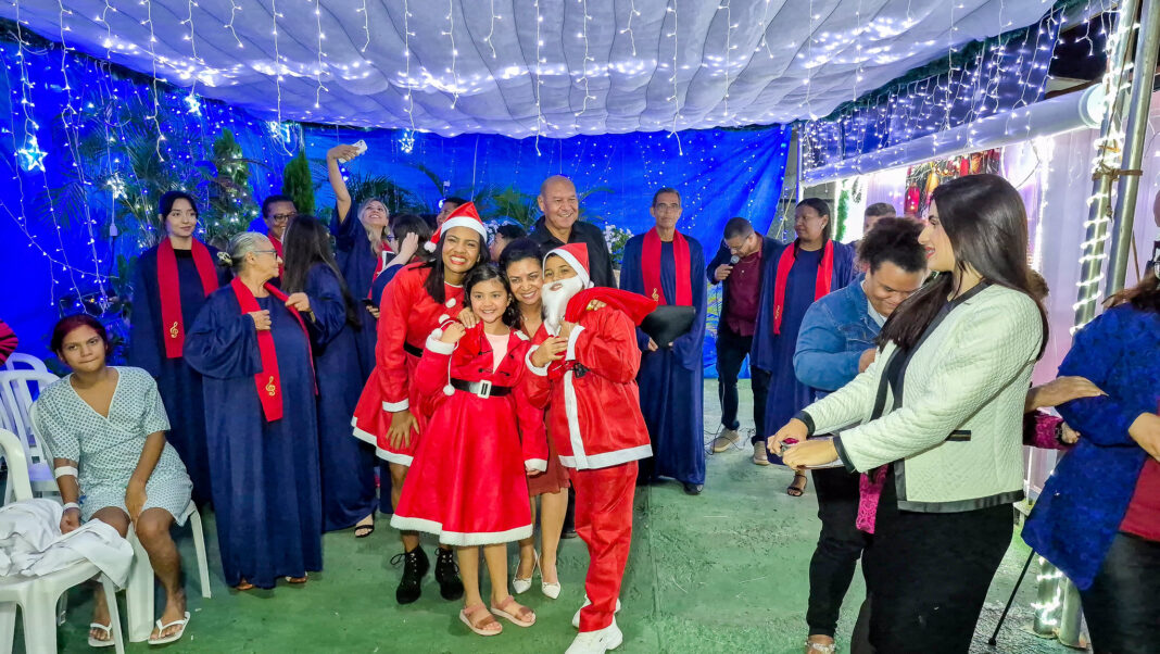 A cerimônia contou com apresentação do coral da Igreja Batista, que embalou o início da programação e simbolizou “o nascimento das luzes”. A presença da Mamãe Noel — interpretada pela técnica de enfermagem Erika Cristina Ribeiro da Silva — emocionou o público. Acompanhada do filho, Arthur Batista Ribeiro Carvalho, e de Maria Cecília Krawczyk, neta da gerente da unidade, ela percorreu a área iluminada distribuindo bombons e desejando Feliz Natal.