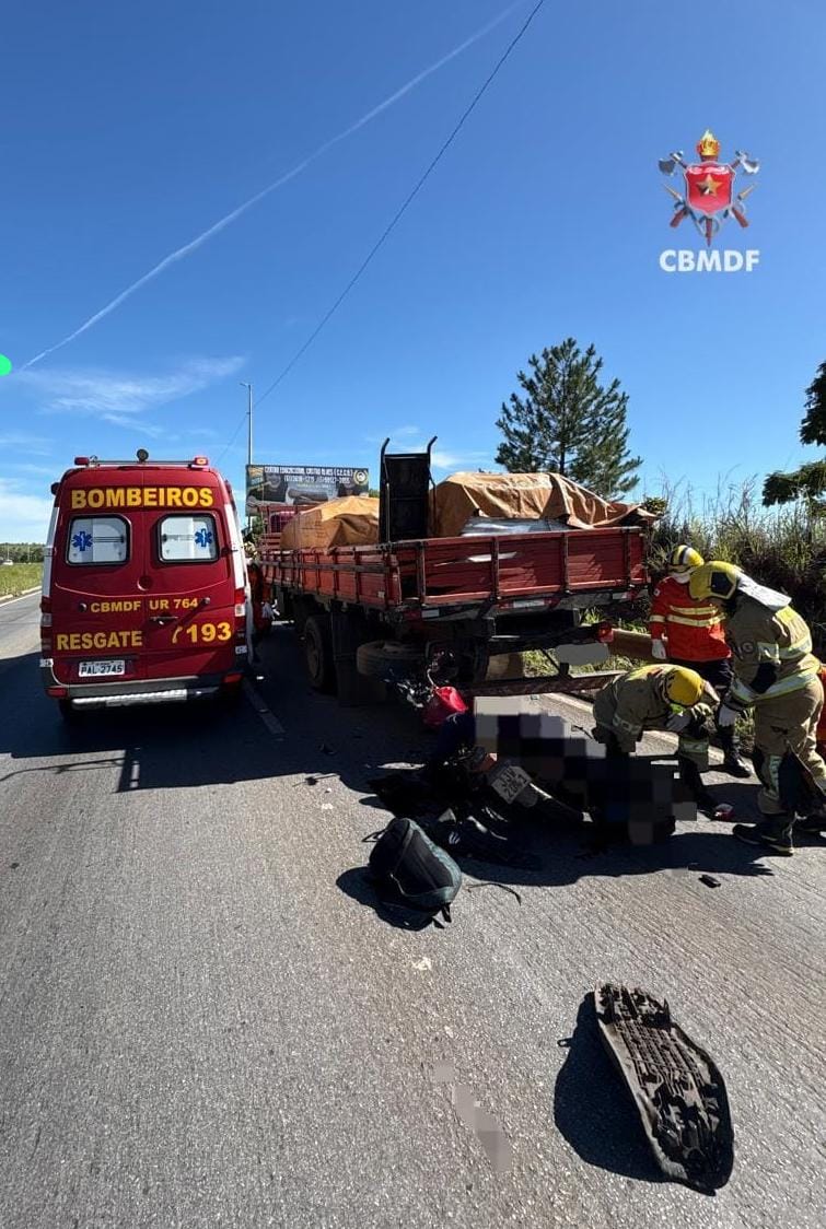 O atendimento foi realizado pelo Corpo de Bombeiros Militar do Distrito Federal, acionado por volta das 8h46, com o emprego de três viaturas. Ao chegarem ao local, as equipes encontraram o motociclista, do sexo masculino, com lesões incompatíveis com a vida, sendo constatado o óbito ainda na rodovia.