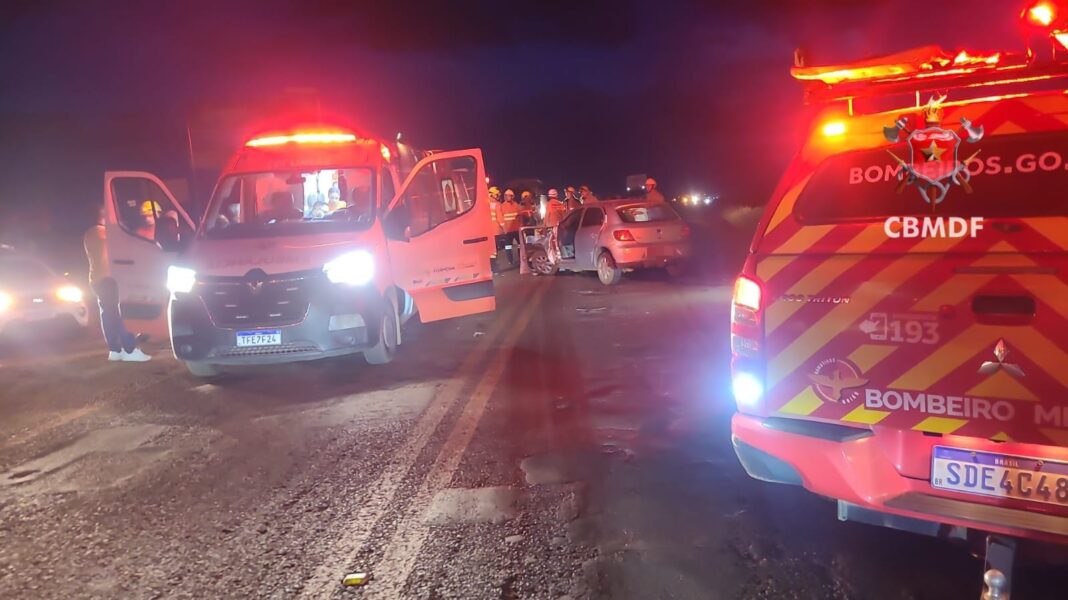 Uma colisão frontal registrada na tarde desta quarta-feira (15) mobilizou equipes do Corpo de Bombeiros Militar do Distrito Federal e de Goiás na BR-020, na altura do km 42/45, antes do posto Indaiá, no sentido Planaltina de Goiás.