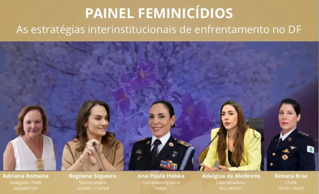 A mesa de debates foi mediada pela Comandante-Geral da PMDF, Coronel Ana Paula Barros Habka, que conduziu as discussões entre as representantes do sistema de segurança pública e de justiça. O painel contou com falas técnicas de aproximadamente 20 minutos de cada convidada, abordando desafios e caminhos para o fortalecimento da rede de proteção feminina.